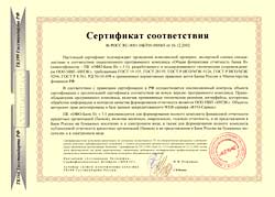 Certificate of Conformity N POCC RU.OOO1.04БТ00.00066, of December 16, 2002 of the State Standardization Committee (Gosstandart) of Russia confirms the compliance of the General Financial Accountability of the Bank II (OFO-Bank II v.3.1) with the GOST (Russian national state standards) requirements and applicable regulatory instruments of the Bank of Russia and the Russian Federation's Finance Ministry